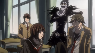 For his own amusement, Ryuk drops his Death Note into the human world. Light stumbles upon it, deeming the first of its rules ridiculous: the human whose name is written in this note shall die. However, the temptation is too great, and Light experiments by writing a felon's name, which disturbingly enacts his first murder.